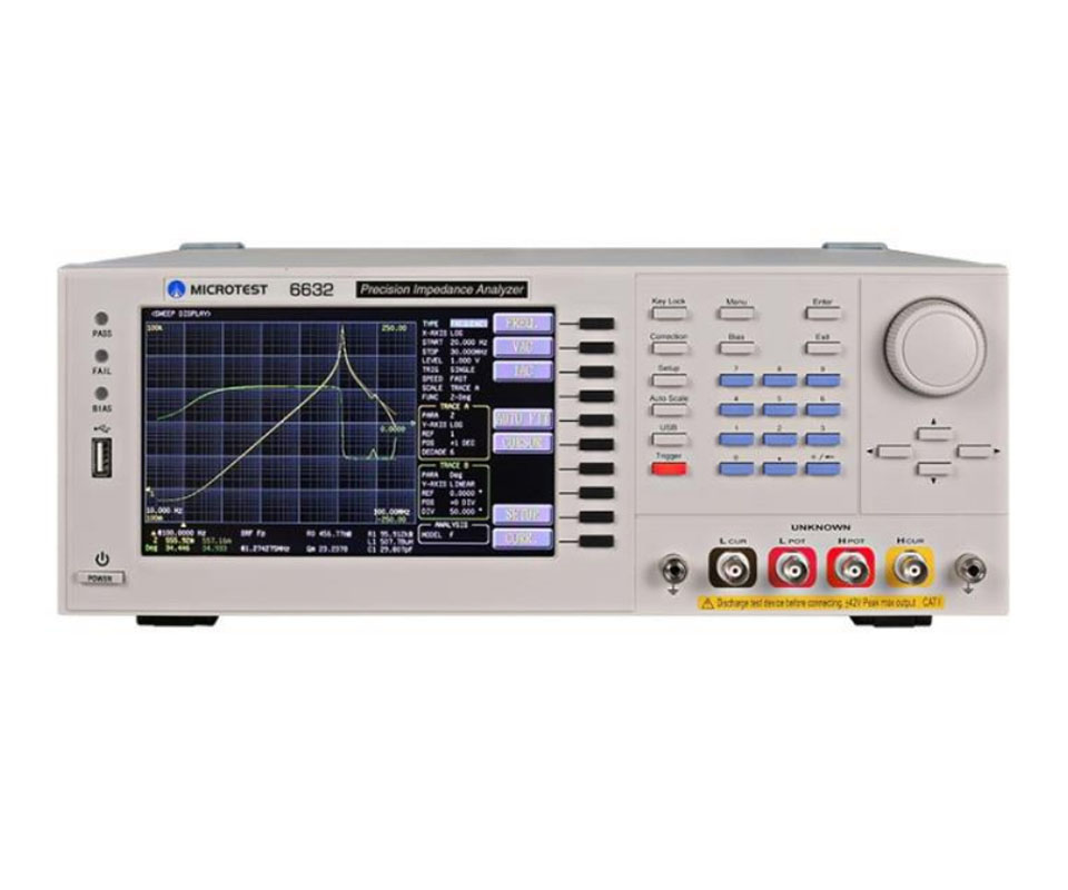 6632 精密阻抗分析儀,提供 6 種頻率選項(xiàng)(10 Hz 至1/3/5/10/20/30 MHz),可以進(jìn)行交流信號(hào)的LCR測(cè)試,測(cè)試頻率和測(cè)試級(jí)別可進(jìn)行連續(xù)變化的階段測(cè)量??稍诓煌瑴y(cè)試、模式條件下、進(jìn)行高速地連續(xù)測(cè)試。提供輸出阻抗25?/100?可切換,ALC補(bǔ)償,多步測(cè)試;BIN 分類及比較器功能在自動(dòng)元件生產(chǎn)時(shí)進(jìn)行良品與不良品分類。內(nèi)建直流偏置電壓±12V,并可選購(gòu)?fù)鈷熘绷髌秒妷?電流 0到±40V/±100mA,精準(zhǔn)量測(cè)壓電陶瓷材料之導(dǎo)納圓繪圖,提供量測(cè)電容之直流電壓特性;及選購(gòu)等效電路分析功能支援7種不同的參數(shù)模型(三元件、四元件),可協(xié)助客戶模擬元件的等效參數(shù)值??纱钆?6210, 6220,或6240直流偏流源測(cè)試系統(tǒng)。且支援RS-232、GPIB、Handler、LAN、USB Host/Device 等介面。